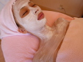 | 拭き取りも施術。ポイントつぼ刺激します。 | 美肌、美白、保湿、セレクトしてパック。 | フローラルの香りで肌の引き締め。 | 化粧水・エッセンス・クリーム塗布。 |